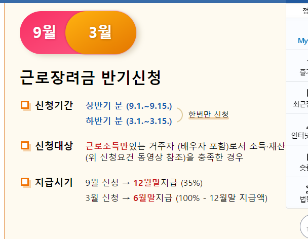 2022년 하반기 분의 근로장려금은 이번 3월에 신청해서 6월에 받을 수 있습니다.